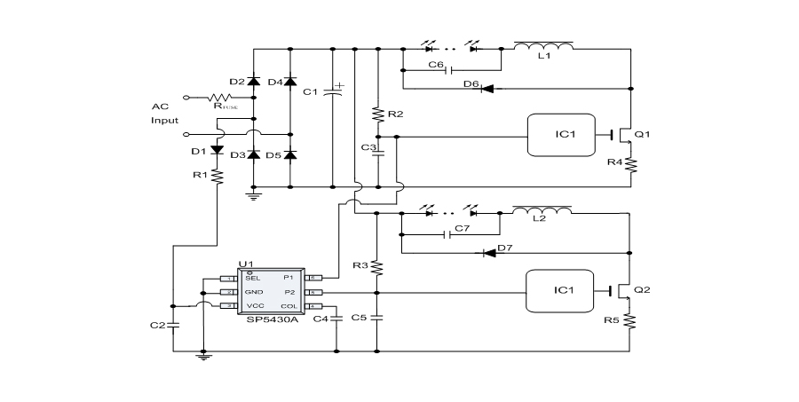 SP5430A是一款雙電源LED開關(guān)調(diào)色/調(diào)光專用控制電路,適用于85VAC~265VAC全電壓應(yīng)用,可以兼容隔離與非隔離架構(gòu)的多種LED驅(qū)動(dòng)方案。SP5430A利用傳統(tǒng)墻壁開關(guān)實(shí)現(xiàn)調(diào)色/調(diào)光功能,用戶無需改造原有的照明開關(guān)控制系統(tǒng)。
