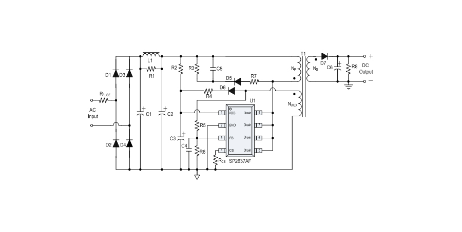 SP2637AF是一款性能優(yōu)異的原邊反饋控制電路,應(yīng)用于小功率AC/DC充電器與適配器。控制電路使用原邊采樣技術(shù)進(jìn)行精確的恒流、恒壓控制,可以省去一般應(yīng)用中的光耦與TL431。